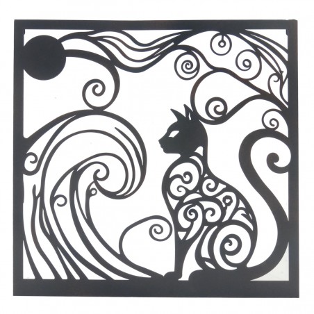 Décoration murale CHAT Lune volutes en métal Noir carré de 50cm