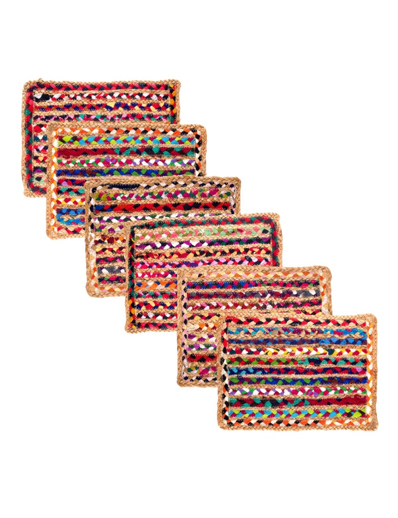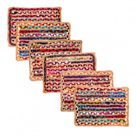 SET de Table ou Dessous de Plat en Jute et Coton tout en Couleur de 30x42cm.