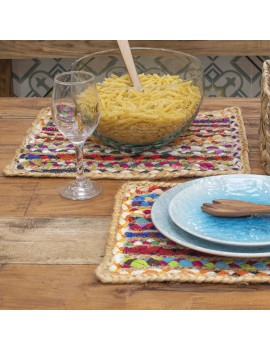 SET de Table ou Dessous de Plat en Jute et Coton tout en Couleur.
