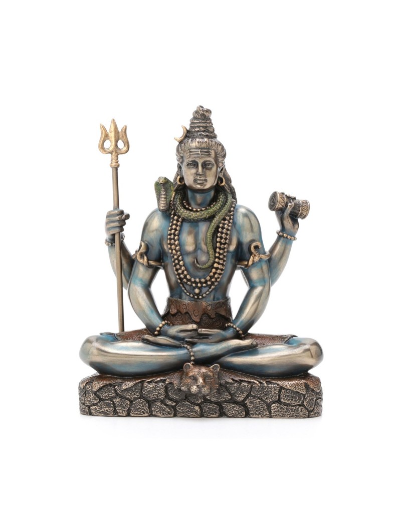 Une statue en polyrésine de couleur Bronze au reflet Bleu Laiton, représentant le dieu Hindou SHIVA dieu du YOGA qui possède la connaissance universelle, "le bon, celui qui porte bonheur".