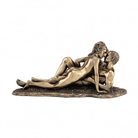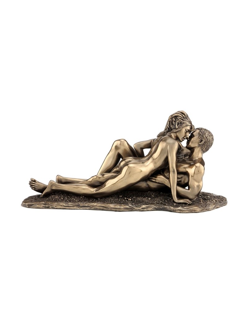 Statue neuve en polyrésine de couleur bronze laiton brillant, d'un couple amoureux, design nu artistique, érotique esthétique.