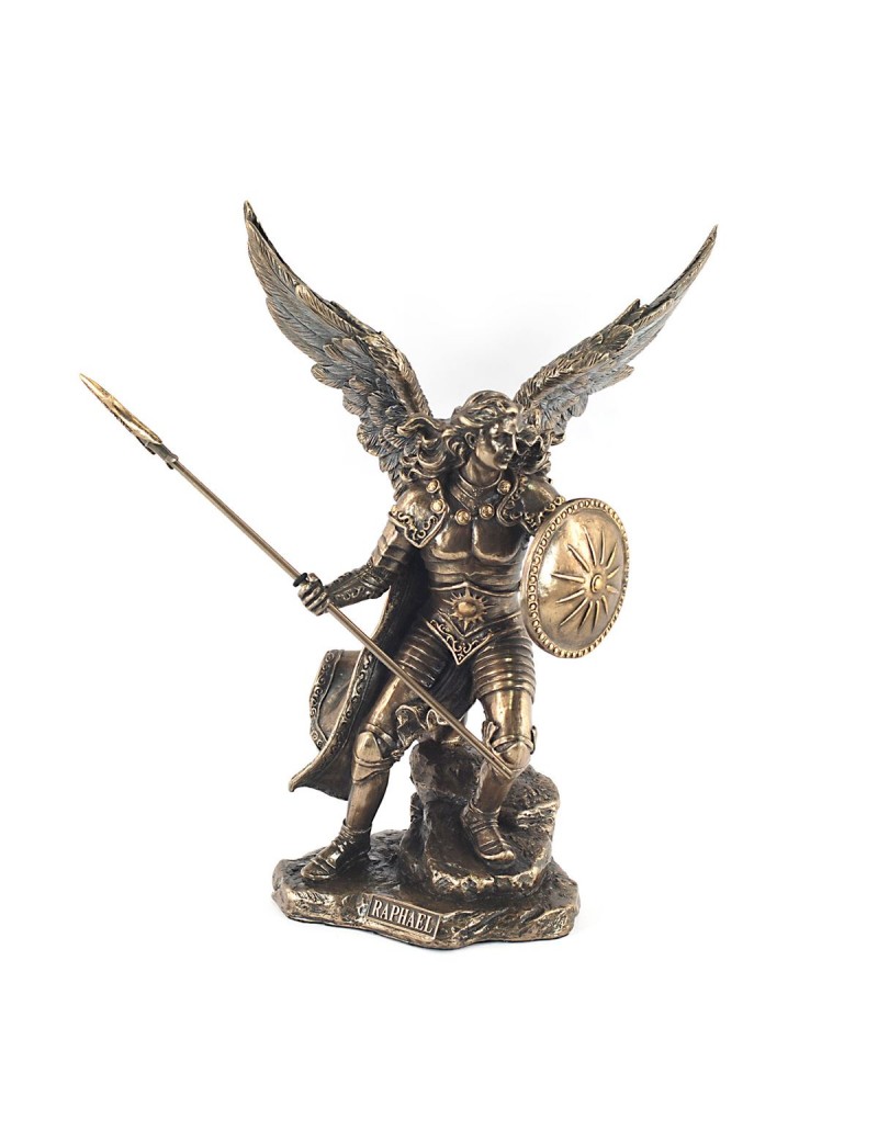 STATUE de l'ARCHANGE RAPHAEL couleur Bronze Laiton décoration RELIGION