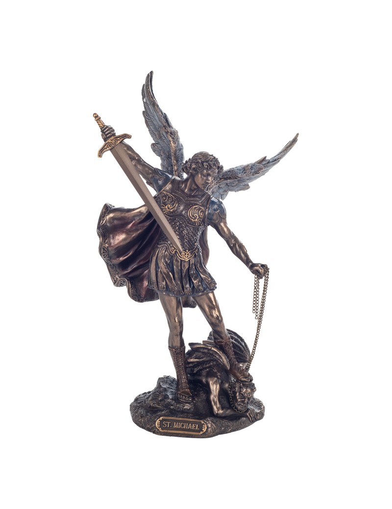 STATUE Saint MICHEL l'archange en polyresine couleur bronze laiton décoration Religion 28cm