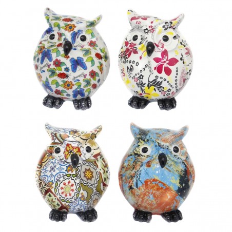 Statue HIBOU Décoration Fleurs couleur Patchwork de 15cm