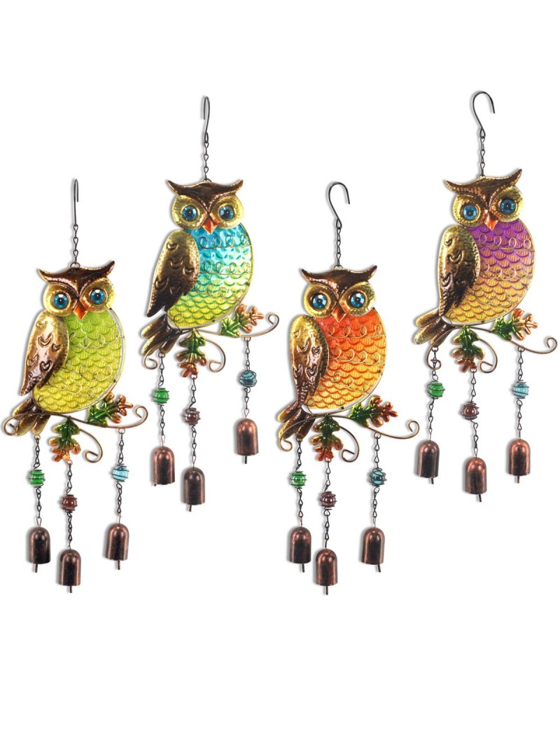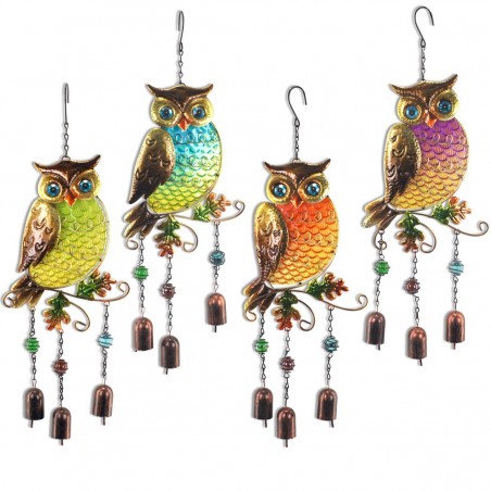 Une suspension mobile décoration collection chouette, hibou avec clochettes, en métal et verre de 58cm.