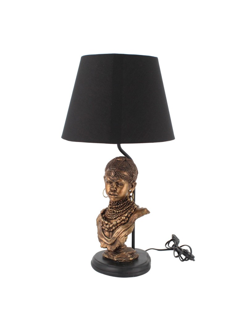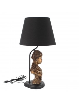 LAMPE de TABLE Buste Ethnique couleur Bronze Abat Jour Noir