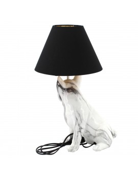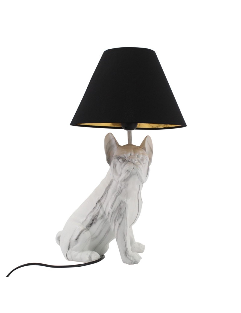 Décoration originale Chien, une Lampe de Table en forme de Bouledogue couleur effet Marbré avec un abat Jour Noir, Lampe de 48cm de hauteur.