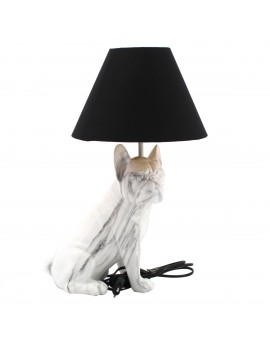 LAMPE Bouledogue avec Abat jour Noir et Chien Blanc Gris de hauteur 48cm