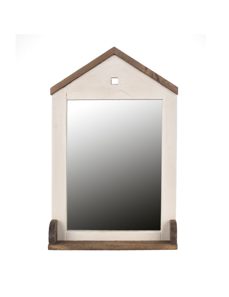 MIROIR Mural en Bois en forme de Maison de 65cm avec petite étagère