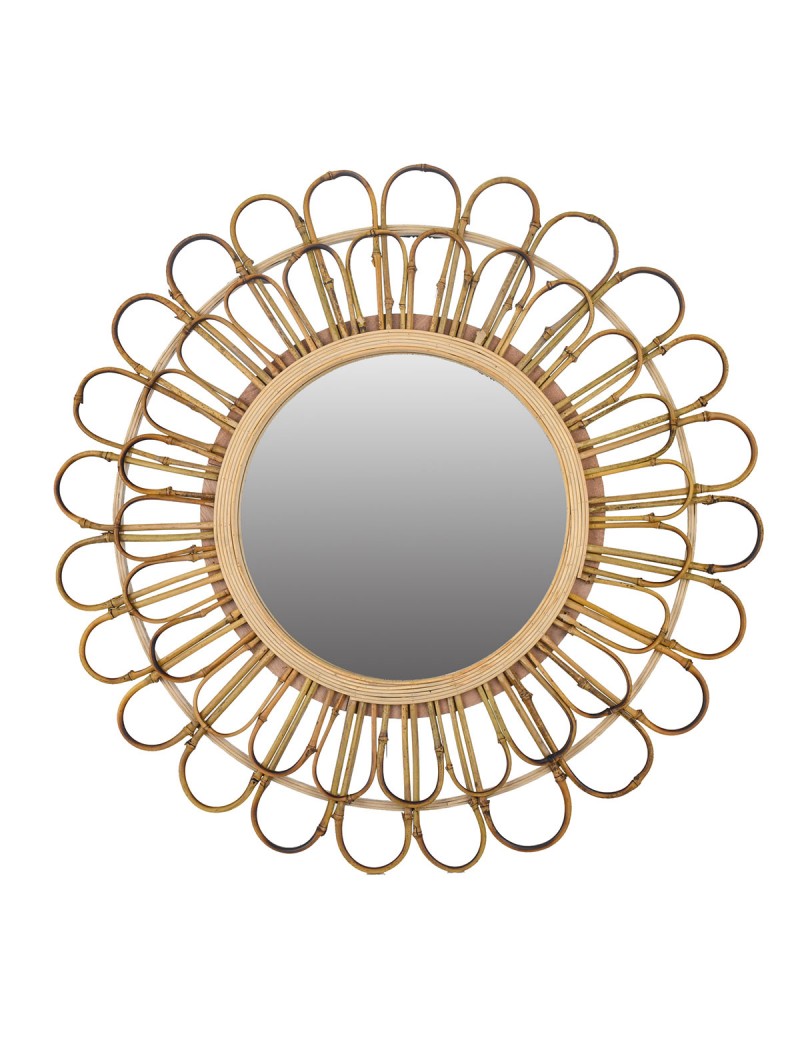 MIROIR mural Rond en BAMBOU de 80cm Design Rosace couleur Naturel
