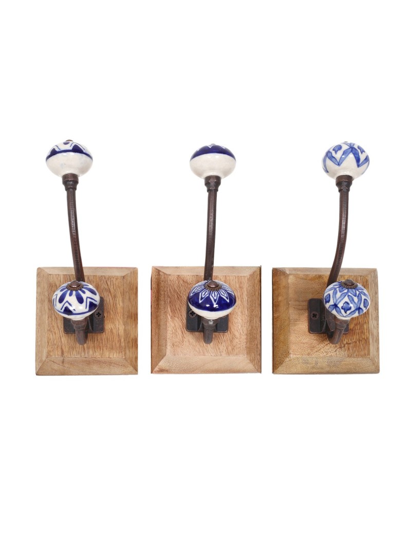 Patère en Bois et métal de 18cm 1 crochet double Décoration rétro